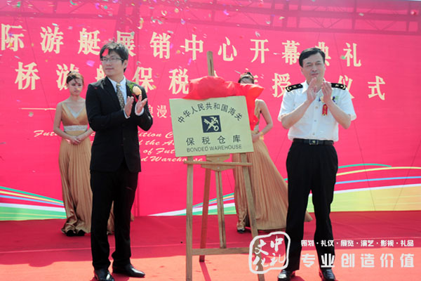 飞桥国际游艇展销中心开幕典礼暨苏州飞桥游艇保税仓库授牌仪式 活动主题:飞桥国际游艇展销中心开幕典礼暨苏州飞桥游艇保税仓库授牌仪式 活动时间:2012年10月15日 活动地点:中国·苏州飞桥国际游艇展销中心 活动人数:200人左右 活动介绍:2012年10月15日,飞桥国际游艇展销中心开幕典礼暨苏州飞桥游艇保税仓库授牌仪式,,在苏州吴中区飞桥国际游艇展销中心举行,该活动由中礼文化负责协办,活动举办圆满成功,获得来宾的一致好评及高度赞扬...... 2012年10月15日,经过充分的准备后,飞桥国际游艇展销中心终于盛大开幕。开幕当天,更是得到了来自苏州海关、苏州吴中区政府、苏州海事局的重视及大力支持。苏州吴中区委书记、苏州太湖国家旅游度假区党工委书记俞杏楠先生,苏州市吴中区委常委、苏州太湖国家旅游度假区党工委副书记,管委会副主任焦亚飞先生及众多吴中区、度假区领导亲临现场,参加开幕式;苏州海关副关长阎伟国先生也亲自莅临开幕式现场为苏州飞桥游艇保税仓库现场授牌,同时出席开幕典礼的还有苏州海事局副局长王立社先生等众多领导。开幕式现场锣鼓轰鸣、彩花漫天,处处洋溢着欢乐的气氛。 飞桥国际游艇展销中心于2012年05月01日正式试营业。在不到半年的时间里,销售额就已突破2500万人民币,售出的游艇中包括江苏省最大的50英尺意大利ATLANTIS(亚特兰蒂斯)及42英尺的世界顶级游艇英国PRINCESS(公主)。骄人的销售成绩奠定了飞桥国际游艇展销中心在中国游艇业的重要地位,吸引了越来越多的游艇销售商及消费者的目光。已有包括深圳飞驰及上海巴富仕在内的众多游艇销售商表示,将把全国范围内的游艇实船陆续向苏州飞桥转移,进行展示、存放、销售及托管。 在这样的大好形势下,飞桥国际游艇展销中心将于2013年,在当地政府的支持下,筹备举办第一届苏州太湖国际游艇展览会。众多游艇业专家都表示,飞桥无论是从地理位置、周边环境、已有的入驻商户规模、实船的数量等,方方面面都具备举办这样大型的、国际性游艇展的必要条件,并且,飞桥国际游艇展销中心举办的游艇展,极有可能成为未来中国最为成功的游艇展会之一,将世界游艇业的目光吸引到苏州,吸引到美丽的苏州太湖国家旅游度假区。正如飞桥的企业标语“苏州飞桥,引领未来游艇生活”一样,苏州飞桥正在朝着这一目标前行。