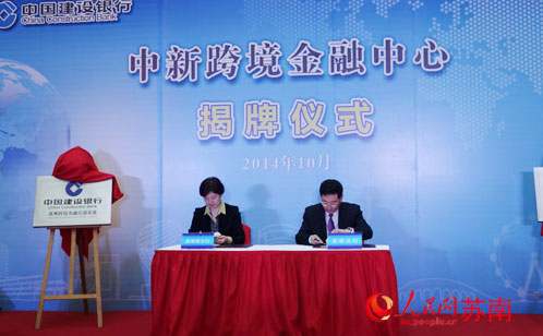 2014年10月27日,苏州工业园区联合协调理事会第十六次会议在苏州园区召开。值此会议召开之际,中国建设银行“中新跨境金融中心”及“苏州跨境金融培训基地”在苏州园区举行了揭牌仪式。