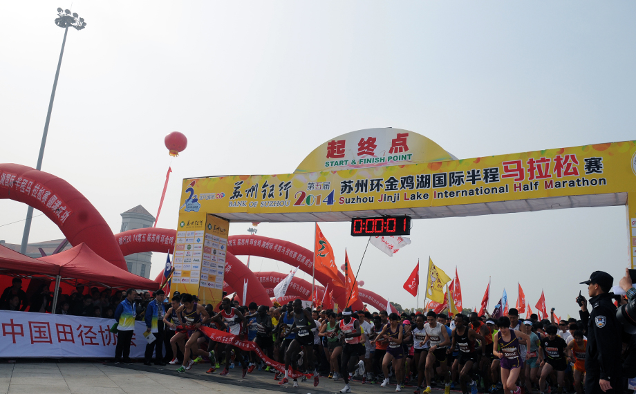 2014年3月30日上午9点,第五届苏州环金鸡湖国际半程马拉松赛将从月光码头——文化艺术中心广场鸣枪开跑。目前本届赛事报名人数超过了2万人,其中半程约7000人。今年大赛共设四个项目,分别为半程马拉松(全程约21公里)、短程马拉松(全程约11公里)、迷你马拉松(全程5公里)和家庭亲子跑(全程2.5公里)。参赛选手方面,有来自肯尼亚、埃塞俄比亚、日本、美国、英国、法国、德国等30个国家和地区,组委会特邀20多位国际优秀运动员和专业选手助阵。